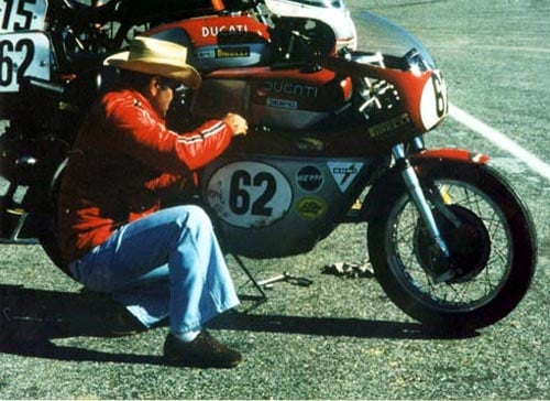 Hi Steve, This is of Reno Leoni working on the Leoni/Adamo 350 sandcast factory racer at Bridgehampton, Long Island, NY. Regards |