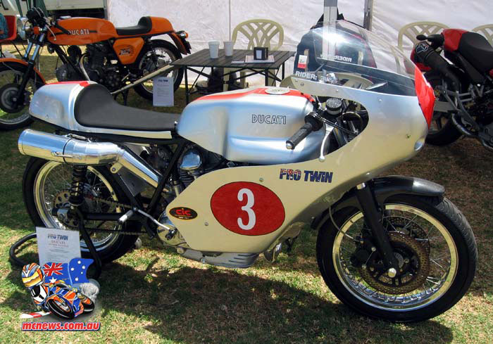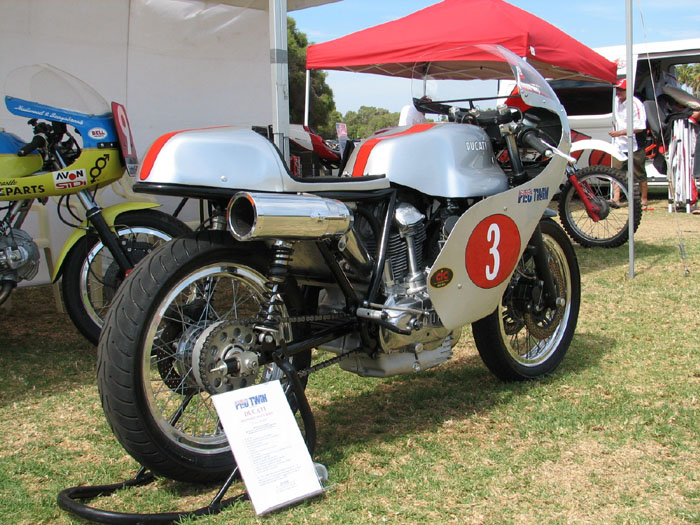 This bike ("The Silver Bullet") is under construction and hope to have it completed ready to race by September 2007. Based on a 750GT roundcase engine and frame. It will initially be raced in Australia and if successful we hope race it in Europe and at Daytona. Malcolm Campbel is the rider, Pro Twin Australia (Justin Klashorst) is doing the engine design. Mitchel Gilmore mechanic and Paul Stoker Owner. Paul Stoker [email protected] |
